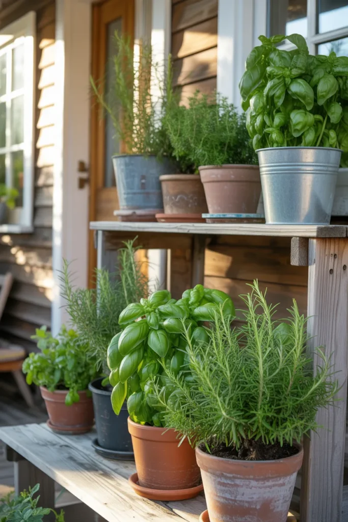 Herb pots are practical and fragrant additions. They add greenery while offering culinary benefits. Arrange them in small clusters for an organized look. Their textures and scents enhance the sensory appeal of your porch.
