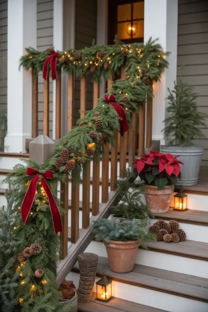 Garlands bring color and texture to railings and banisters. Swap flowers or foliage with each season for freshness. They create a cohesive look when paired with planters. This subtle decor elevates your porch’s curb appeal.