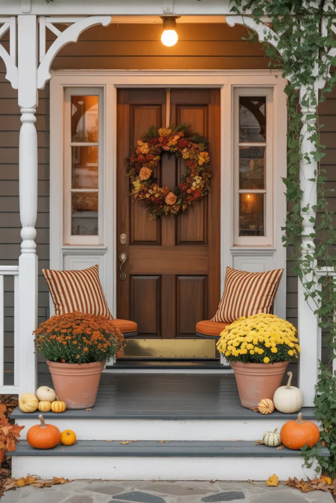 Wreaths add instant charm and seasonal flair. Swap them throughout the year to keep your porch feeling fresh. Combine with potted greenery for a harmonious look. Even a simple wreath elevates the entryway’s aesthetic.