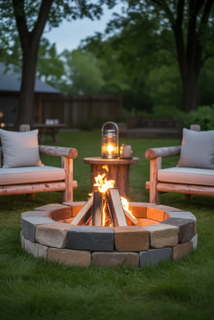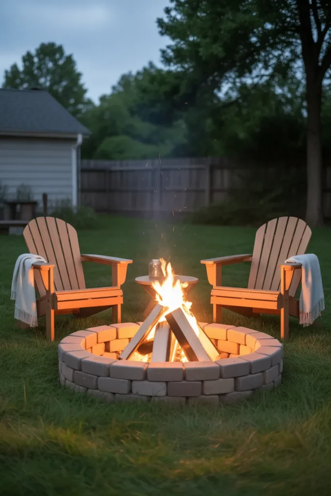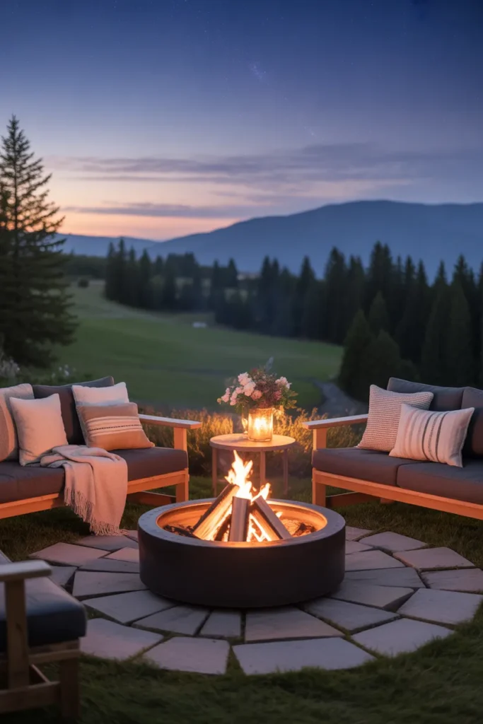 A kid-friendly fire pit setup focuses on safety and comfort for the whole family. Low seating and soft materials make it welcoming for everyone. It’s perfect for creating memorable family evenings outdoors.