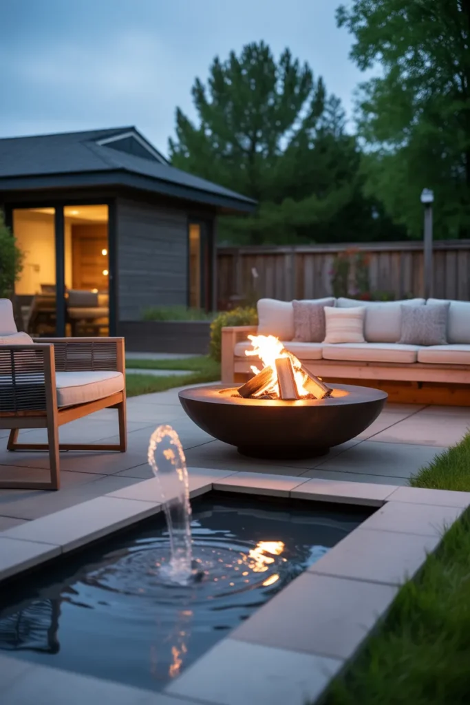 Combining a fire pit with a water feature creates a unique and calming outdoor experience. The contrast between fire and water adds visual interest and tranquility. It transforms your backyard into a peaceful retreat perfect for relaxation.