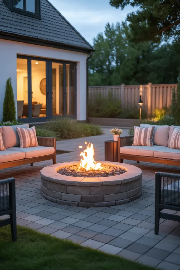 A paver patio adds structure and style to your fire pit area. The clean lines and durable surface make it both practical and visually appealing. It’s a great option for creating a polished outdoor living space.