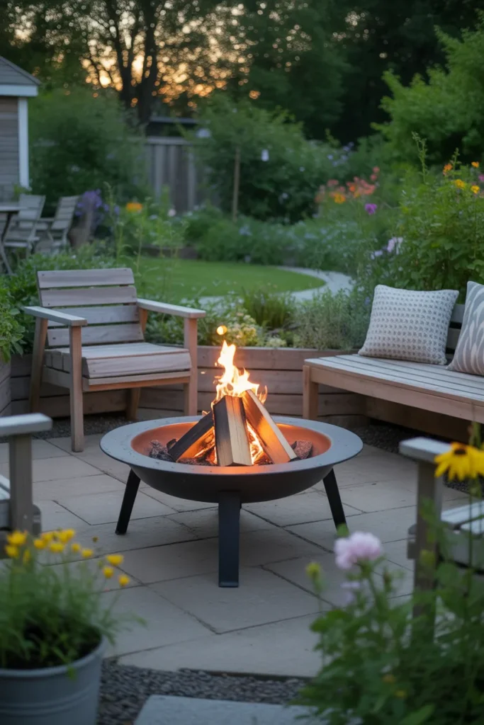 A fire pit surrounded by a garden enhances the beauty of your outdoor space. The mix of greenery and firelight creates a calming and refreshing atmosphere. It’s perfect for nature lovers who enjoy peaceful evenings.