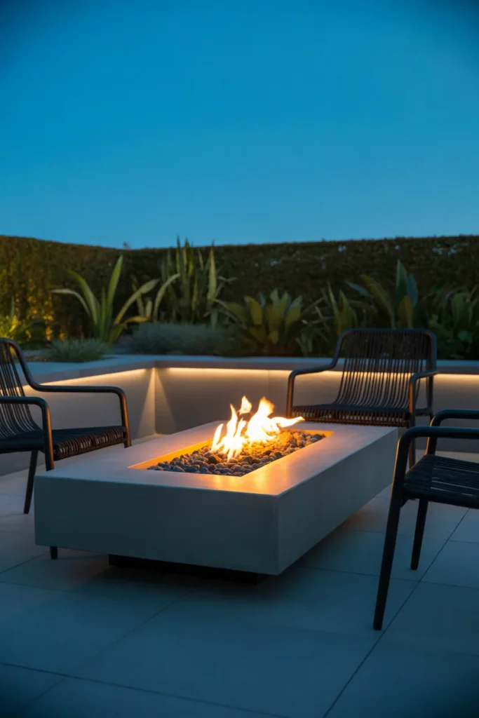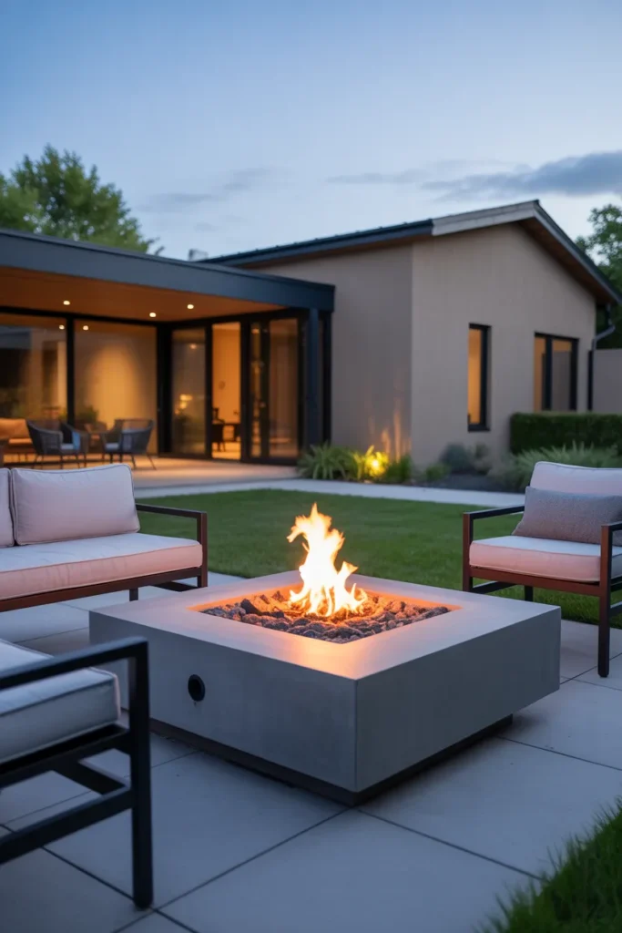 A modern minimalist fire pit adds a clean and sophisticated touch to any outdoor space. Its simple design keeps the focus on comfort and elegance without overwhelming the area. This style works beautifully in contemporary homes looking for a refined outdoor vibe.
