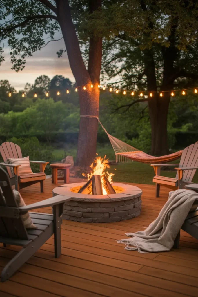 Adding a hammock near your fire pit creates the ultimate relaxation zone. You can enjoy the warmth of the fire while gently swaying under the night sky. It’s perfect for quiet and calming evenings.