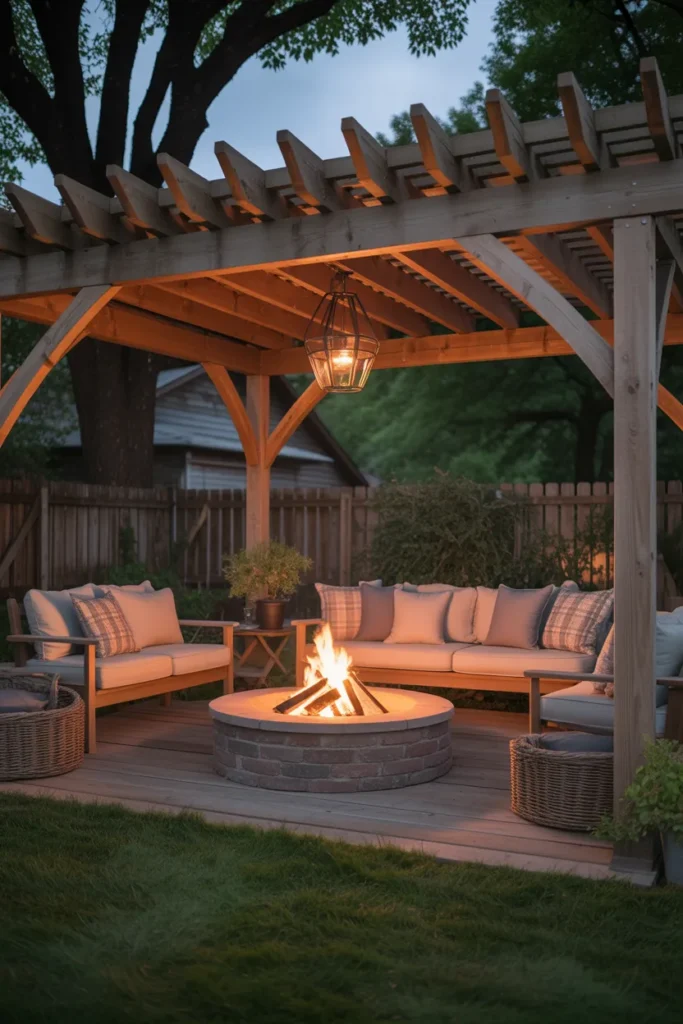 A pergola over your fire pit adds both structure and charm to your outdoor space. It creates a defined area that feels inviting and stylish at the same time. With added lighting and decor, it becomes the perfect spot for relaxing nights.