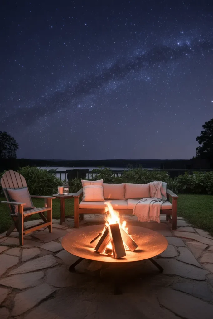 A fire pit under a starry sky creates the ultimate cozy outdoor experience. The combination of firelight and stars makes the atmosphere magical. It’s perfect for ending the day in a calm and peaceful way.
