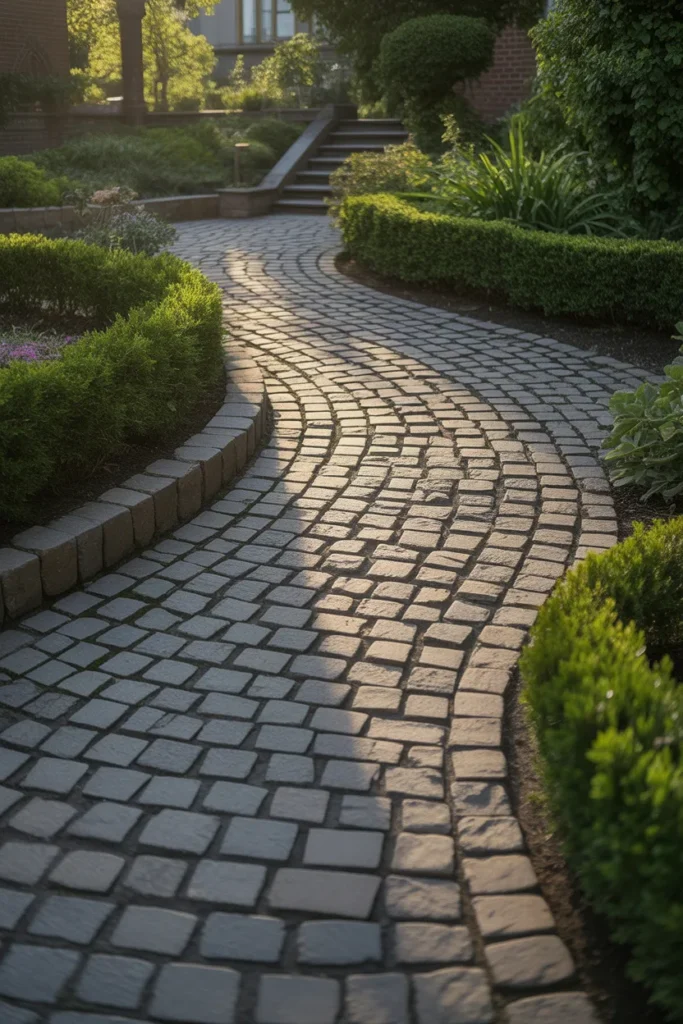 Cobblestone paths offer a classic European charm. The small stones create a textured surface that feels timeless and durable. This design pairs beautifully with traditional gardens. It adds character and a sense of history to your outdoor area.