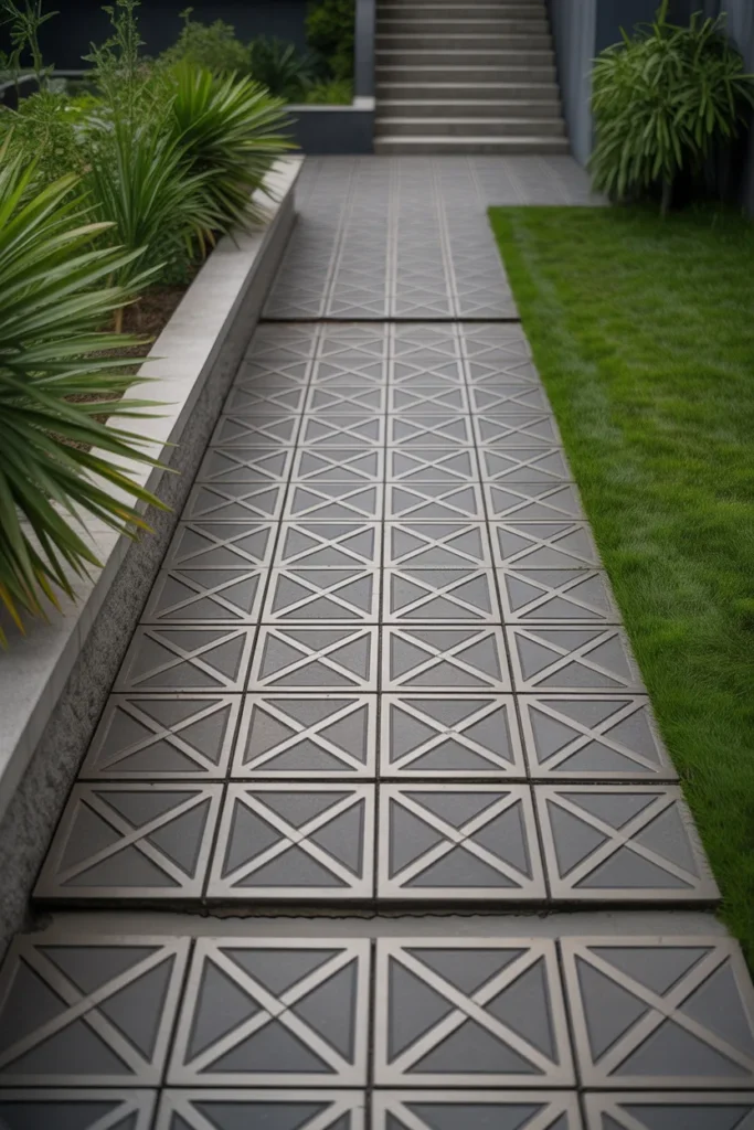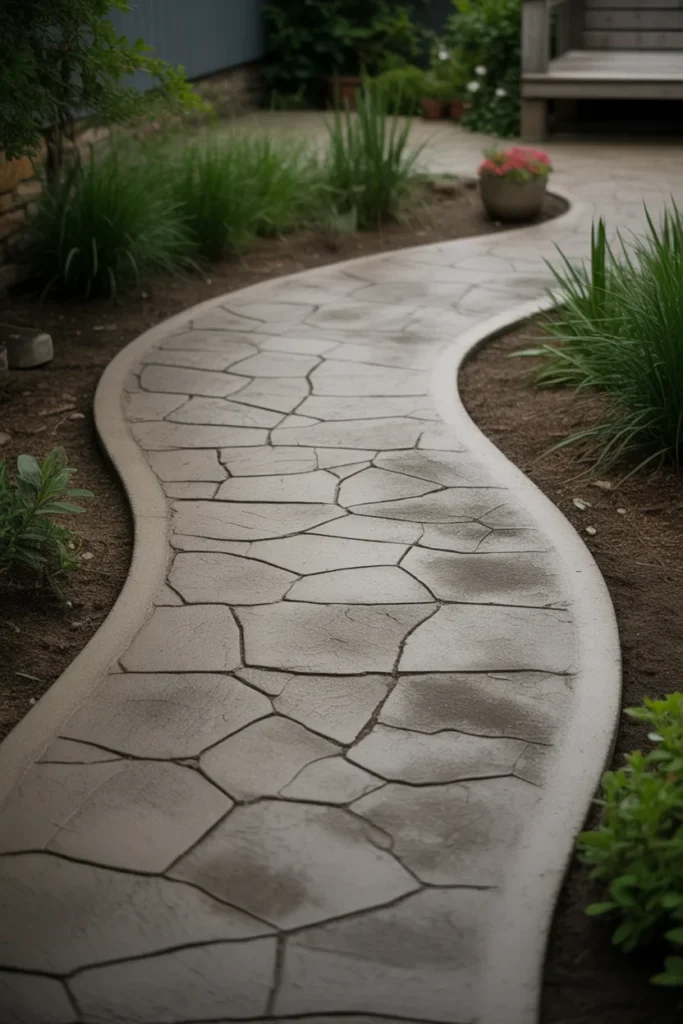 Patterned concrete offers style with durability. You can create geometric or artistic designs using molds. It provides a clean and modern finish while being low maintenance. This pathway is perfect for adding visual interest with minimal effort.