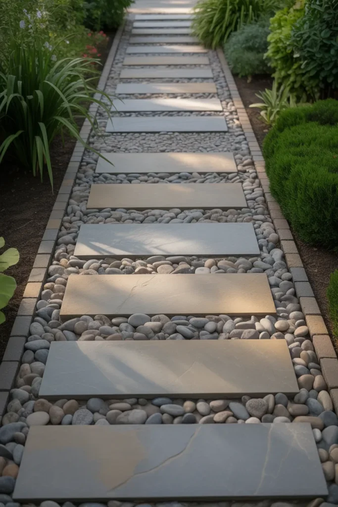 This combination creates a visually rich and textured walkway. Large slabs provide stability while pebbles fill the gaps beautifully. It’s easy to install and looks high-end. The mix of sizes adds depth and interest to your path.