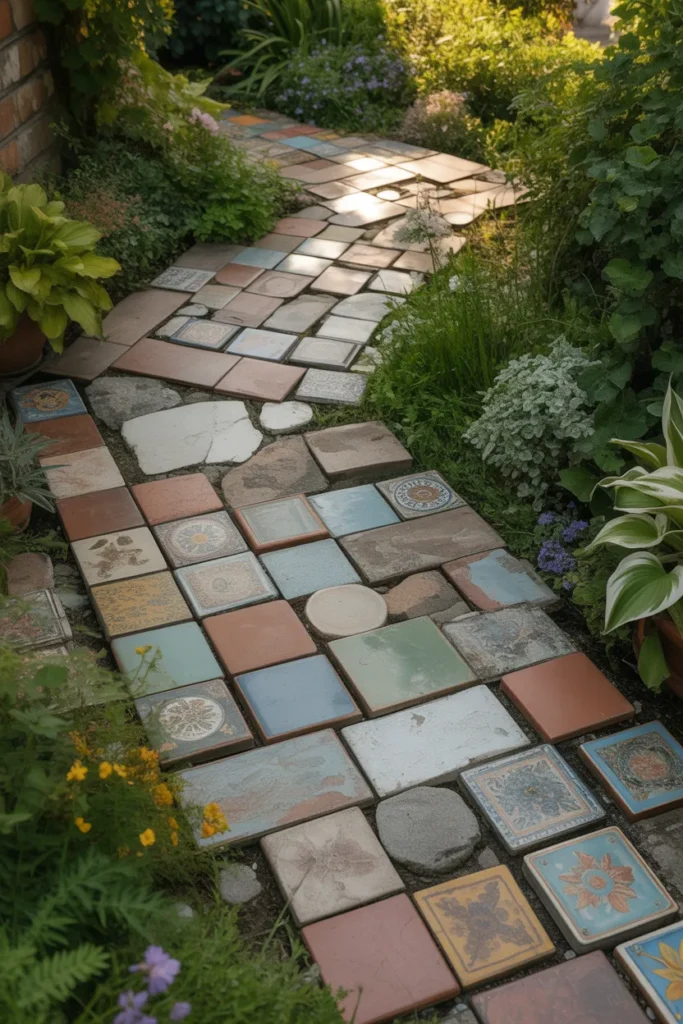 Recycled tiles are a creative and eco-friendly option. Using leftover or old tiles reduces waste while adding charm. Each pathway becomes unique with different colors and patterns. It’s a great way to personalize your outdoor space.