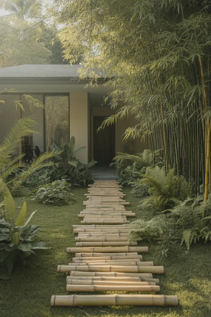 Bamboo pathways bring a tropical and calming feel to your garden. The natural material blends beautifully with plants and greenery. It’s lightweight, sustainable, and easy to install. This design is ideal for creating a peaceful retreat.
