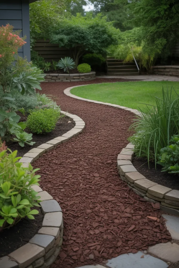 Mulch pathways are one of the simplest and most affordable DIY options. Spread organic mulch along a defined path to create a soft and natural walkway. It’s perfect for informal gardens and woodland-style landscapes. Mulch also helps retain moisture and suppress weeds.