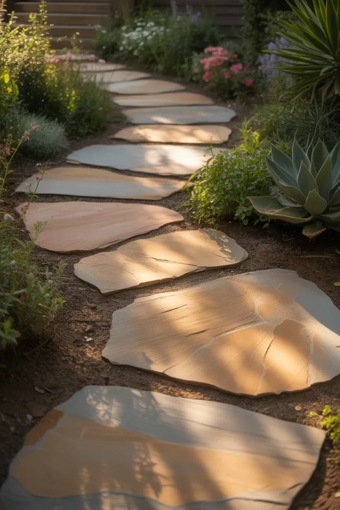 Sandstone pathways bring a warm and natural aesthetic to your garden. The soft earthy tones blend beautifully with greenery. These stones are easy to place and create a relaxed, organic look. They are perfect for creating a peaceful and inviting outdoor space.
