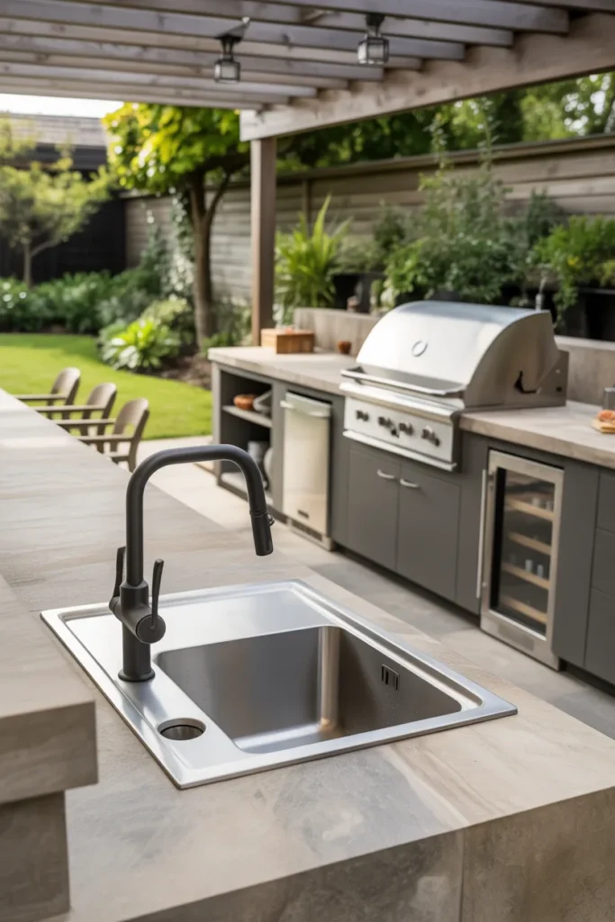 A built-in sink adds practicality to your outdoor kitchen by making cleanup easier. It allows you to prep food and wash dishes without going inside. This feature improves efficiency during gatherings. It’s a simple addition that makes a big difference.