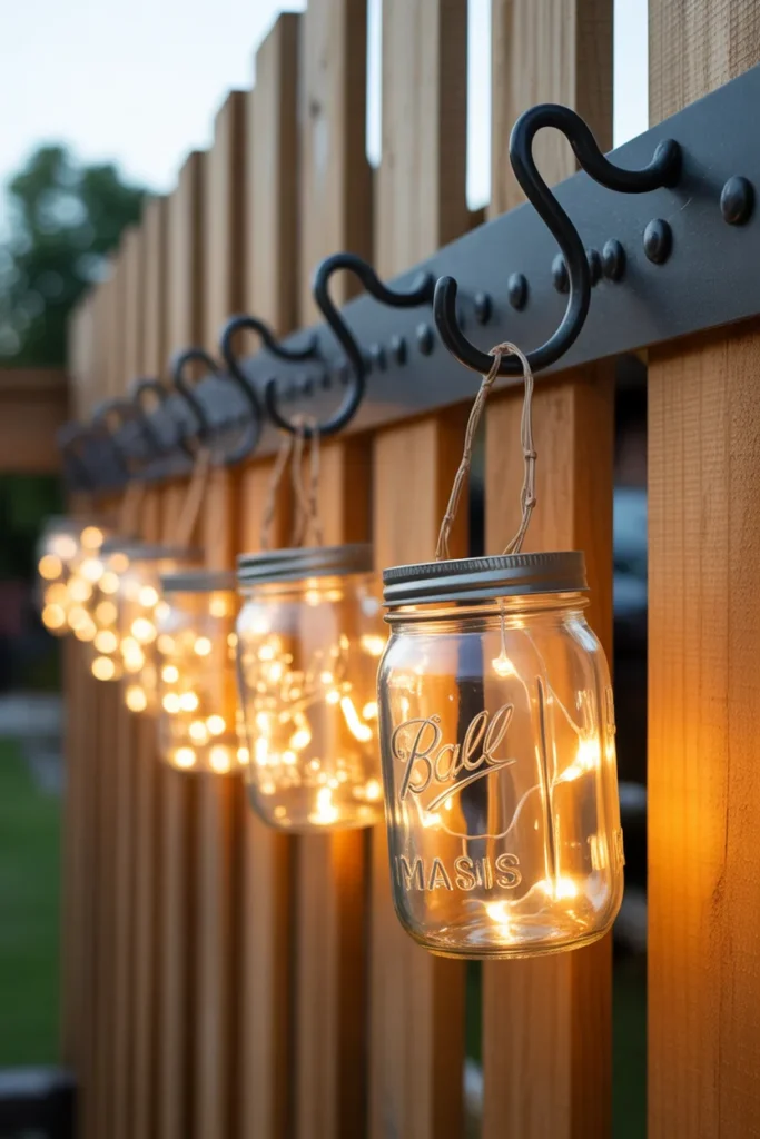 12. Mason Jar Lights Hanging on Hooks