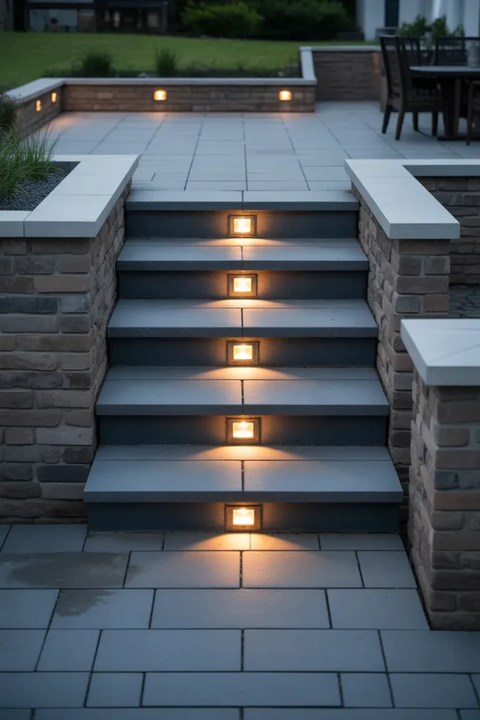 13. Step Lighting for Multi-Level Patios