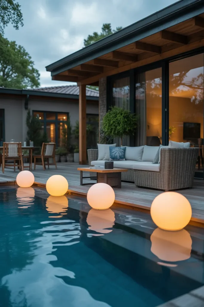 20. Floating Poolside Lights Near Patio