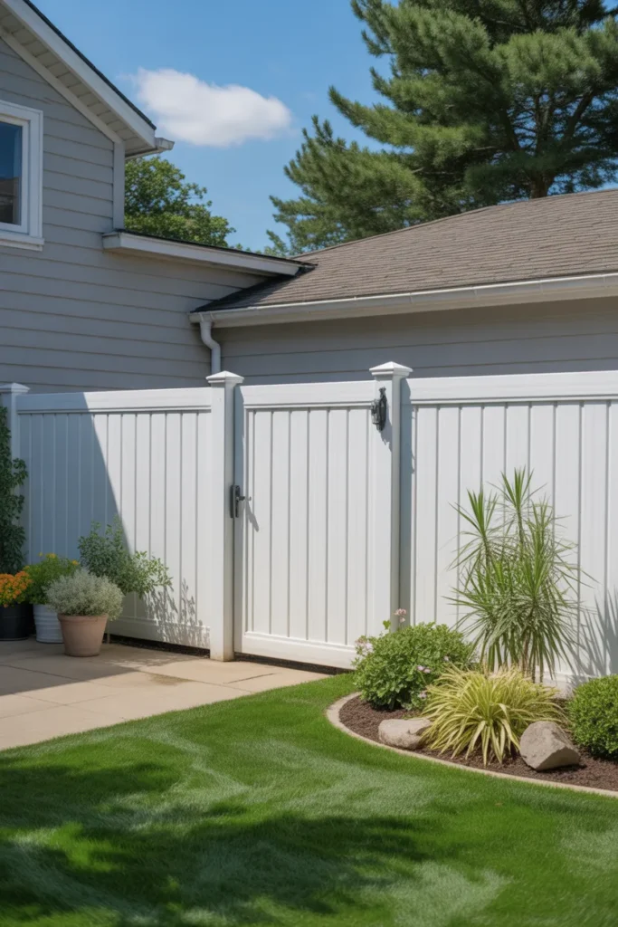 Vinyl privacy fences are trending because they require very little maintenance compared to traditional wood. They resist moisture, pests, and fading, which makes them ideal for busy homeowners. The solid panels create a fully enclosed backyard space that feels quiet and secure. Many people also choose vinyl because it stays bright and clean for years with minimal upkeep.