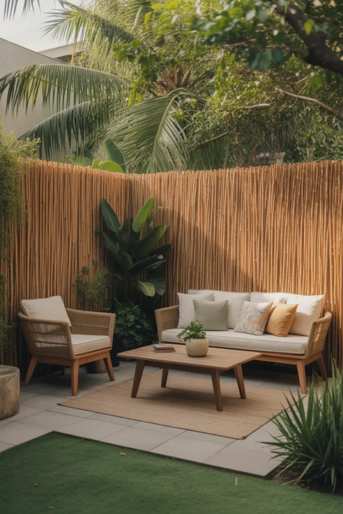 Bamboo fencing is gaining popularity because it brings a natural and calming feel to outdoor spaces. The vertical bamboo poles create strong visual texture while still acting as an effective privacy barrier. Many homeowners choose bamboo for its eco-friendly qualities and tropical aesthetic. It works especially well in garden patios or peaceful backyard retreats.