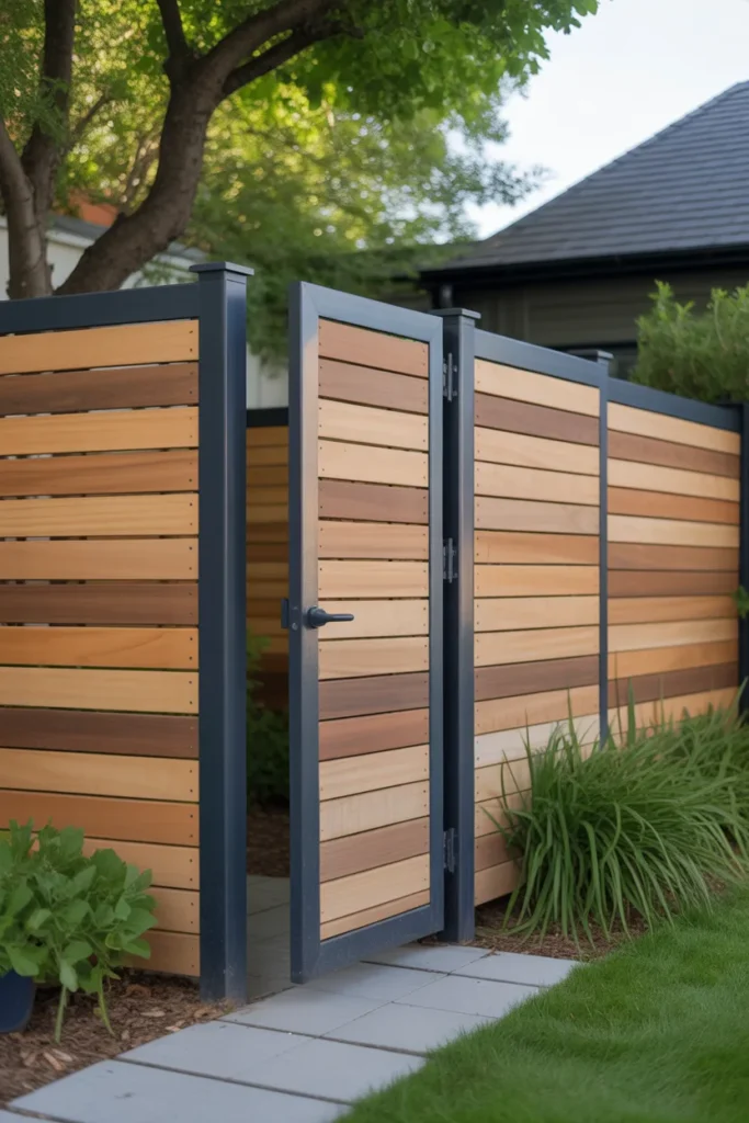 Combining wood and metal materials creates a fence that feels both modern and durable. The warmth of wood softens the strong industrial look of metal framing. This contrast gives the backyard a designer feel that many homeowners love. It also provides a strong structure that can withstand different weather conditions.