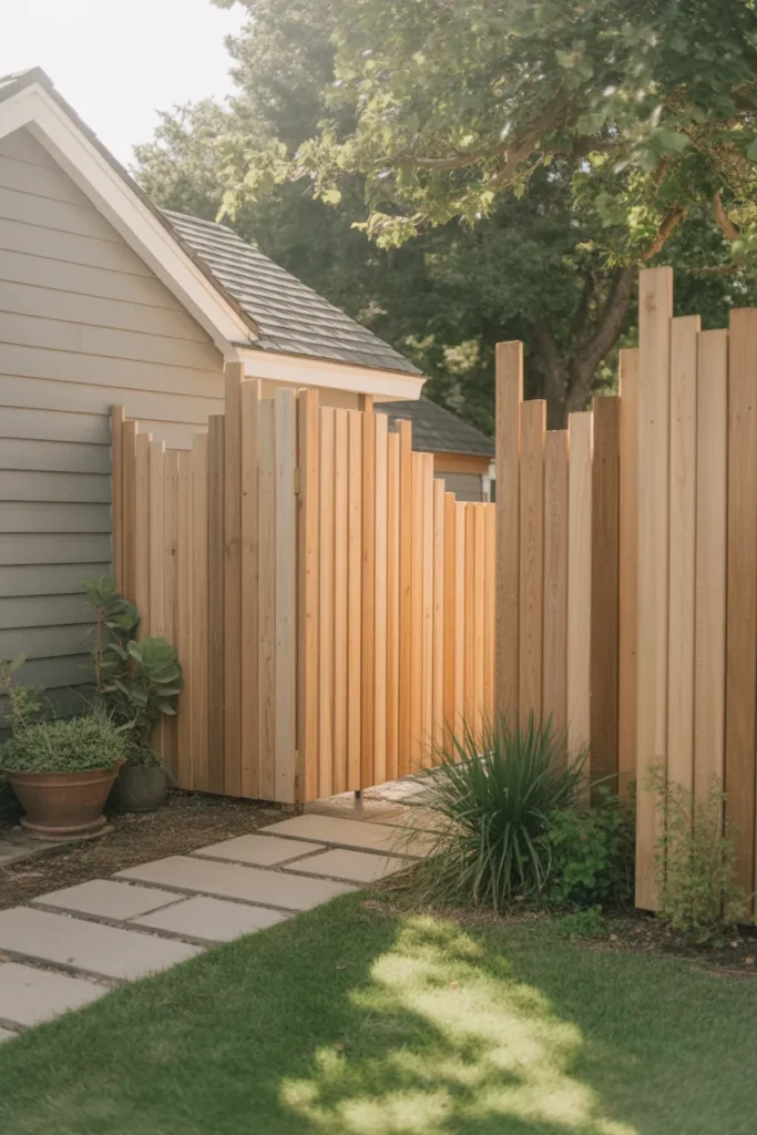 Horizontal wood slat fences have become one of the most popular backyard upgrades because they instantly create a clean and modern look. The evenly spaced boards provide privacy while still allowing light and airflow through the yard. Homeowners love how this design works beautifully with contemporary homes and minimalist landscaping. Using cedar or redwood also adds warmth and durability that lasts for years.